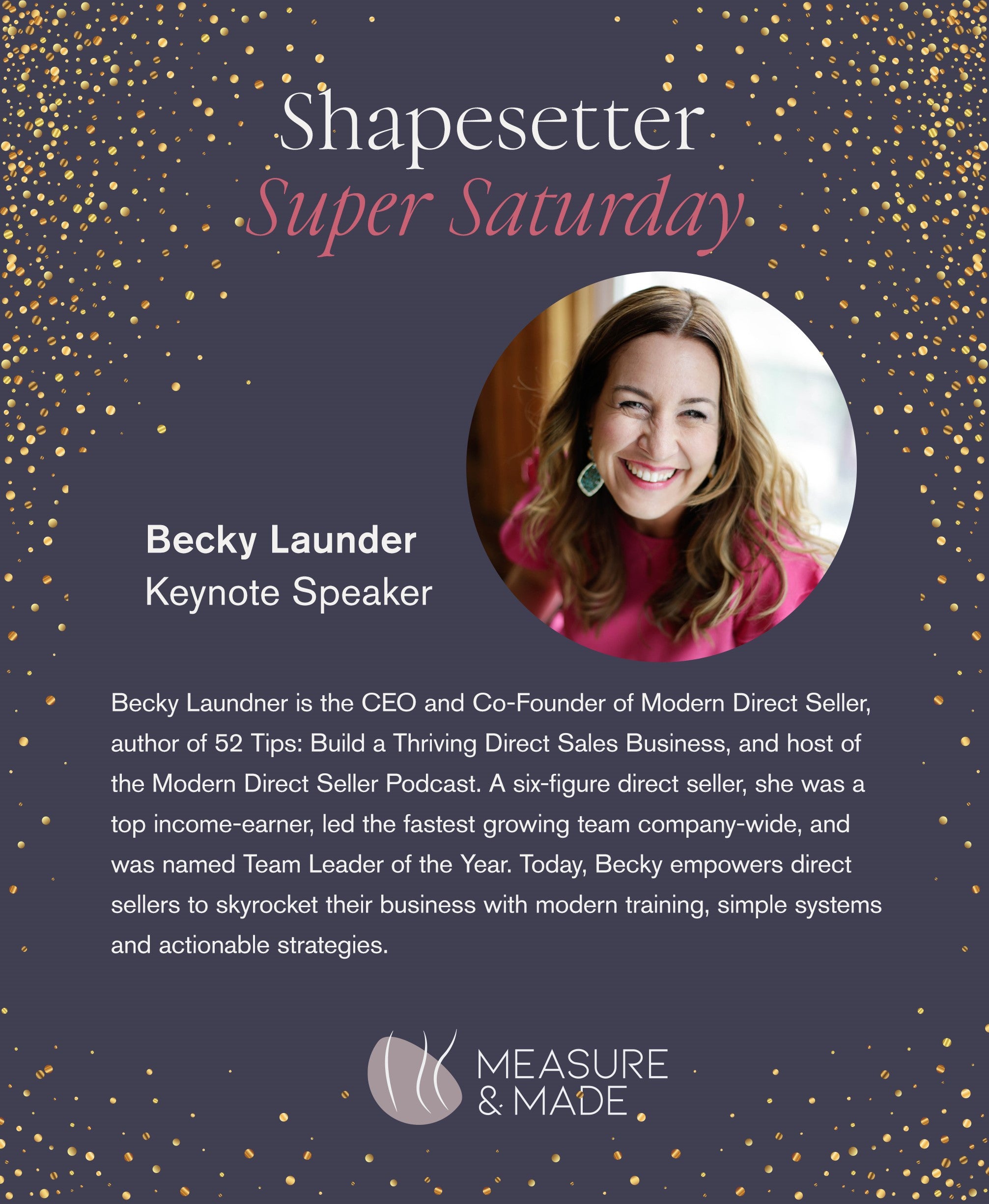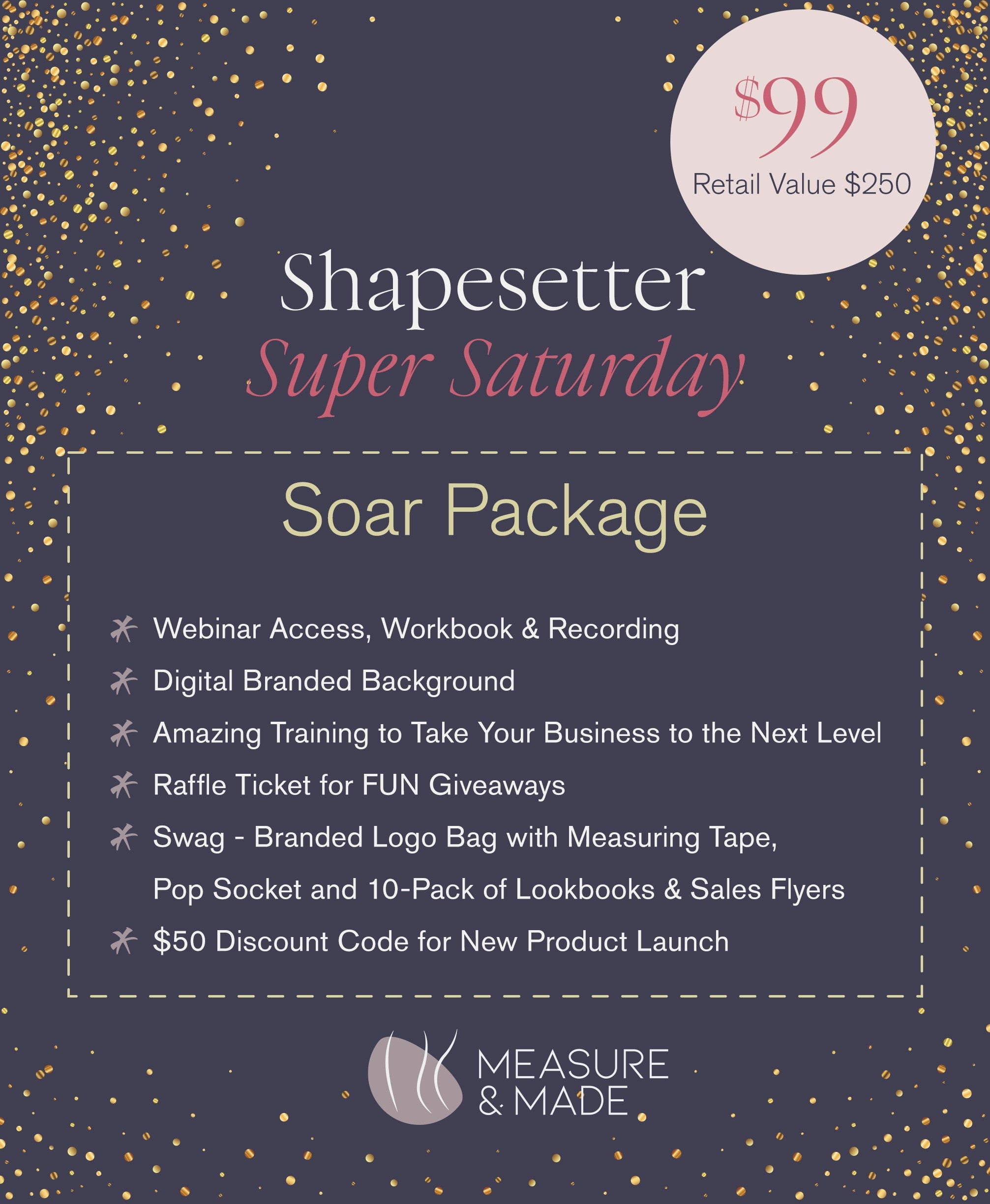 Soar into 2023 when you register for the Shapesetter Super Saturday virtual event. Don't miss exciting news from your Founder, HQ team and special guest speaker Becky Launder. Select one of two event packages to participate: Elevate $29 (retail value $110) or Soar $99 (retail value $250)